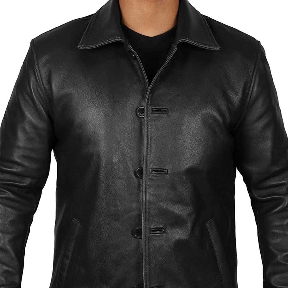 - This leather coat on the front is adorned with a button closure that gives durability and easy usability for those who choose to style themselves with buttoned jackets.